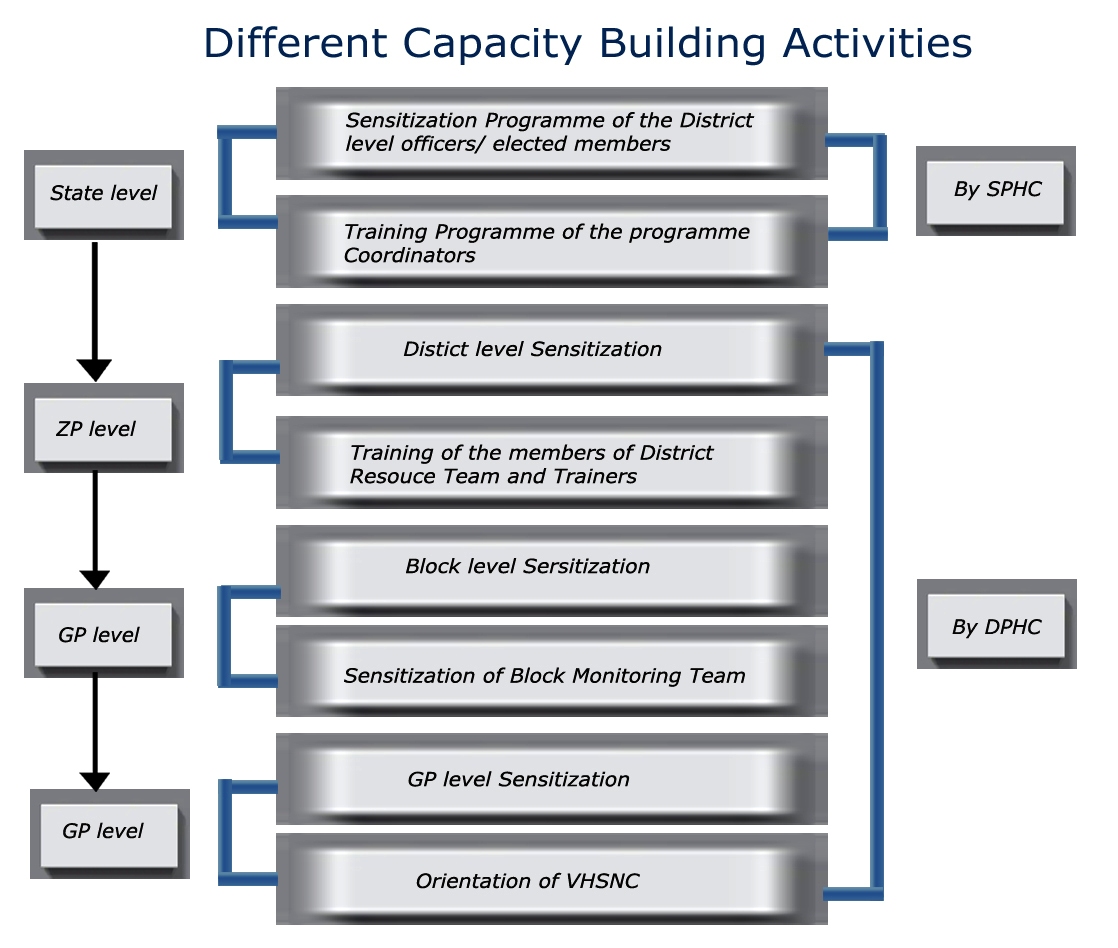activities and proper utilization of fund, the three tiers of the PRIs along with the VHSNC and Self Help Groups and also the Government officials associated with this